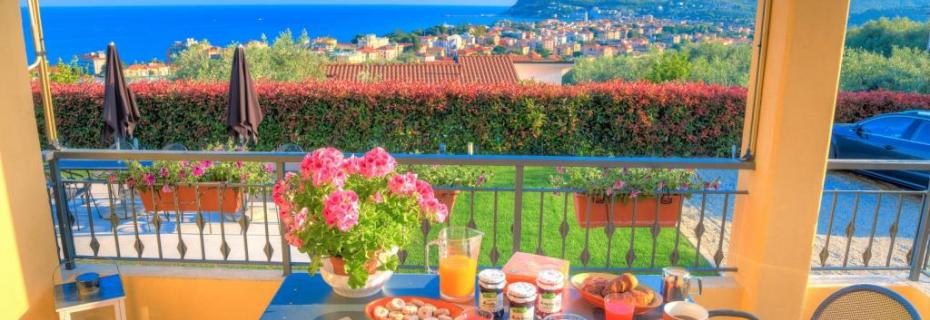 Appartamenti in moderna villa con jacuzzi, giardino, piscina e vista mare.