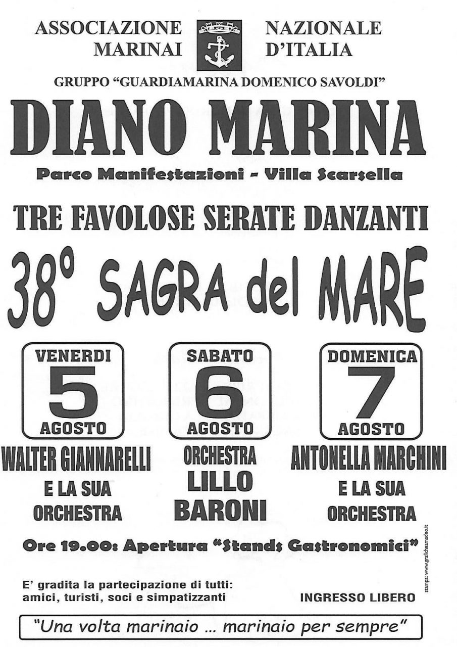 Sagra enogastronomica e serate danzanti a cura dell'Associazione Nazionale Marinai d'Italia Diano Marina.