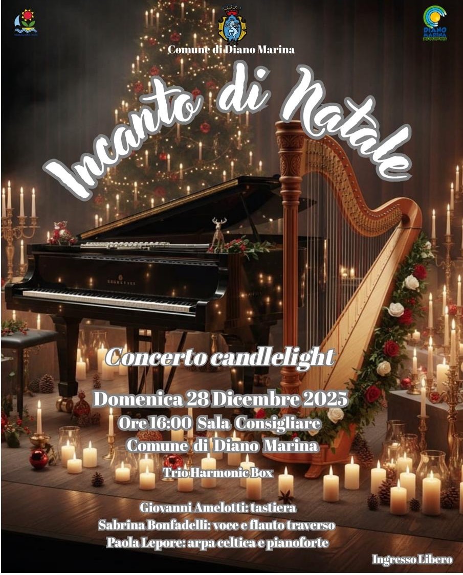 "Incanto di Natale" - Concerto Candlelight a cura del trio "Harmonic Box": Giovanni Amelotti (tastiera), Sabrina Bonfadelli (voce e flauto traverso) e Paola Lepore (arpa celtica e pianoforte).
