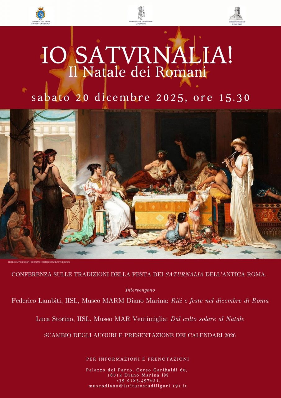 Conferenza nella Sala Risorgimentale del Museo sulle tradizioni della festa dei Saturnalia dell'antica Roma a cura di Federico Lambiti (Museo Civico Diano Marina) e Luca Storino (Museo Civico archeologico "Girolamo Rossi" di Ventimiglia).