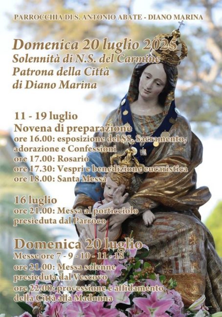 Qui di seguito gli appuntamenti della Parrocchia di S. Antonio Abate di Diano Marina in occasione della festa patronale della Madonna del Carmine: