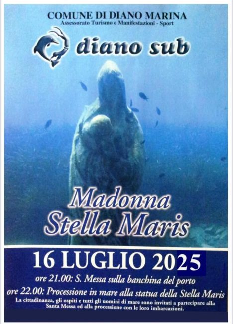h. 21,00 : Al porto: S. Messa presieduta dal Parroco e omaggio floreale a cura dell'Ass. Diano Sub alla statua sommersa della Madonna "Stella Maris"