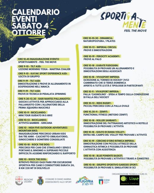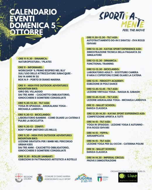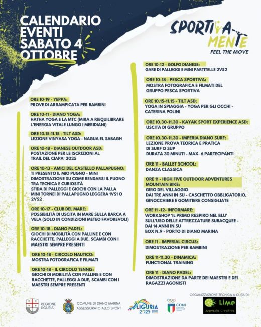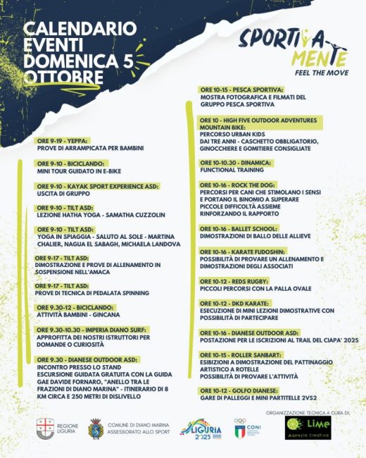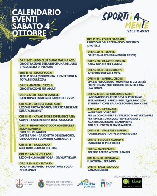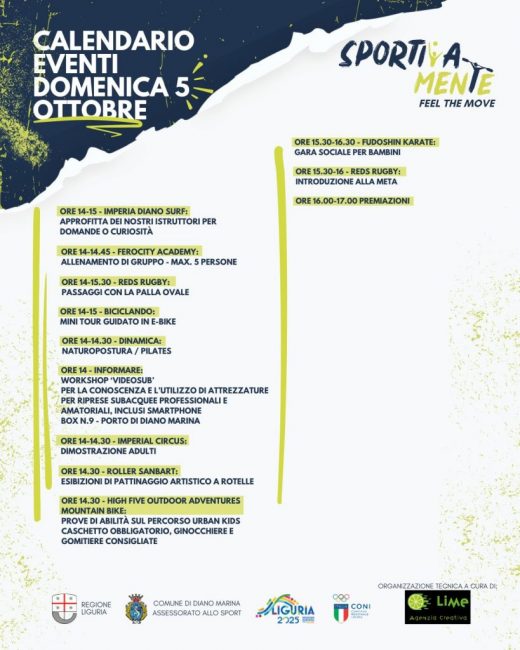 Il 4 e 5 ottobre "Sportivamente" porta a Diano Marina attività, tornei, dimostrazioni e tanto divertimento.